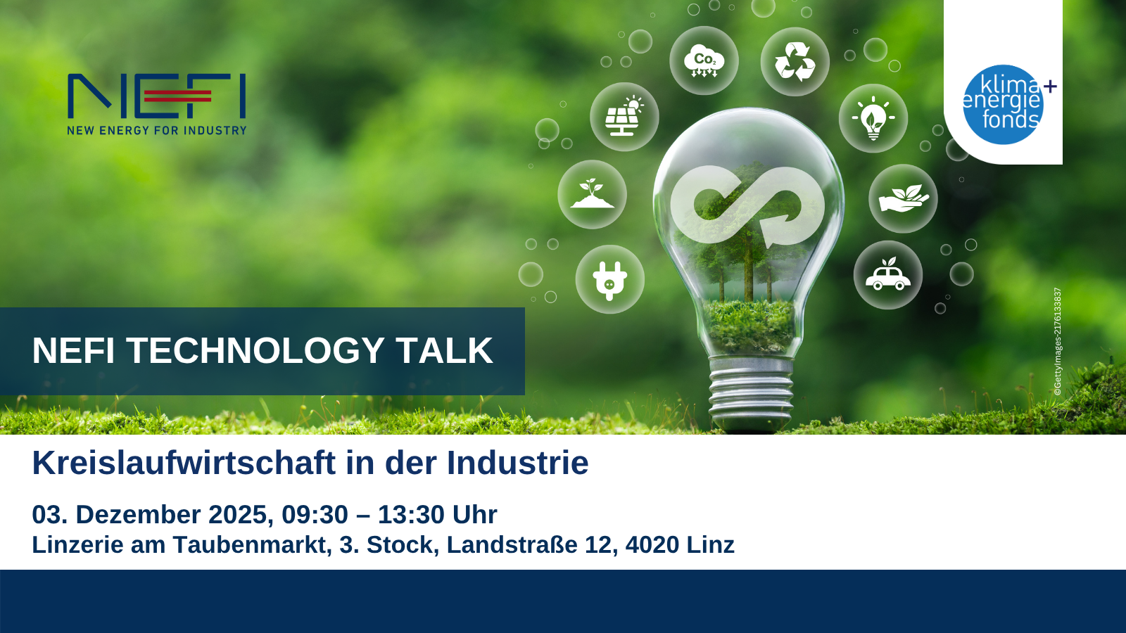 NEFI - New Energy for Industry, das österreichische Innovationsnetzwerk zur Transformation der Industrie in Richtung Klimaneutralität, präsentiert im Rahmen der NEFI Technology Talks neue Wege und innovative Ansätze für eine ressourcenschonende, klimafreundliche industrielle Zukunft. Diese Veranstaltungsreihe bringt Technologieentwickler*innen, Unternehmen und Forschungspartner*innen zusammen, um gemeinsam an den Lösungen von morgen zu arbeiten.