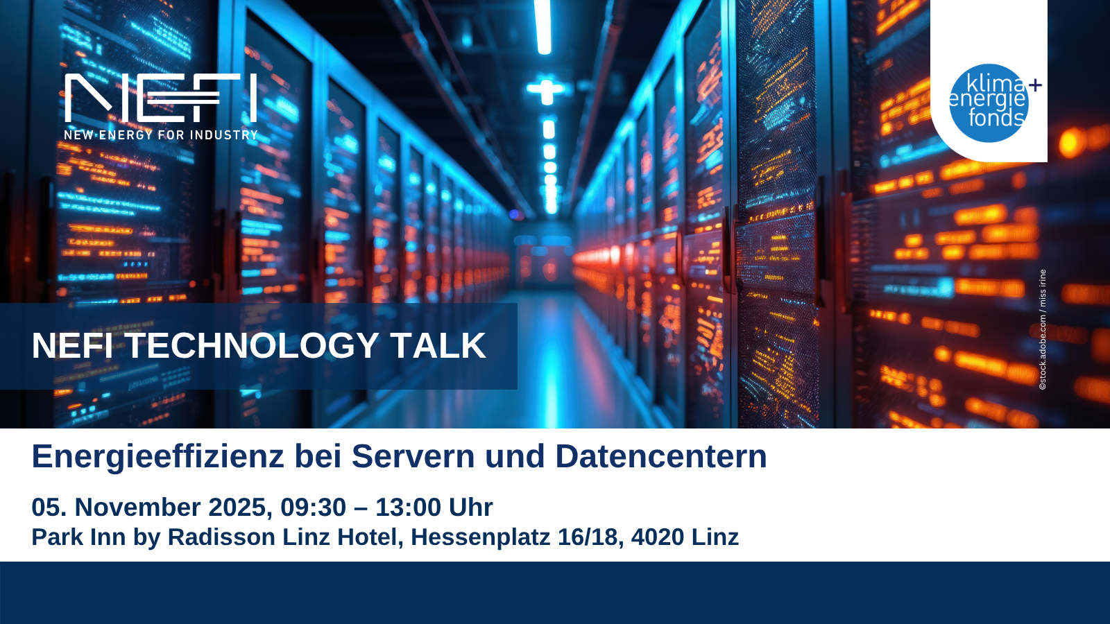 Im Zentrum des NEFI Technology Talks des OÖ Energiesparverbandes stehen Effizienz-Maßnahmen, die dazu beitragen, den Stromverbrauch von Servern und Datencentern zu reduzieren.