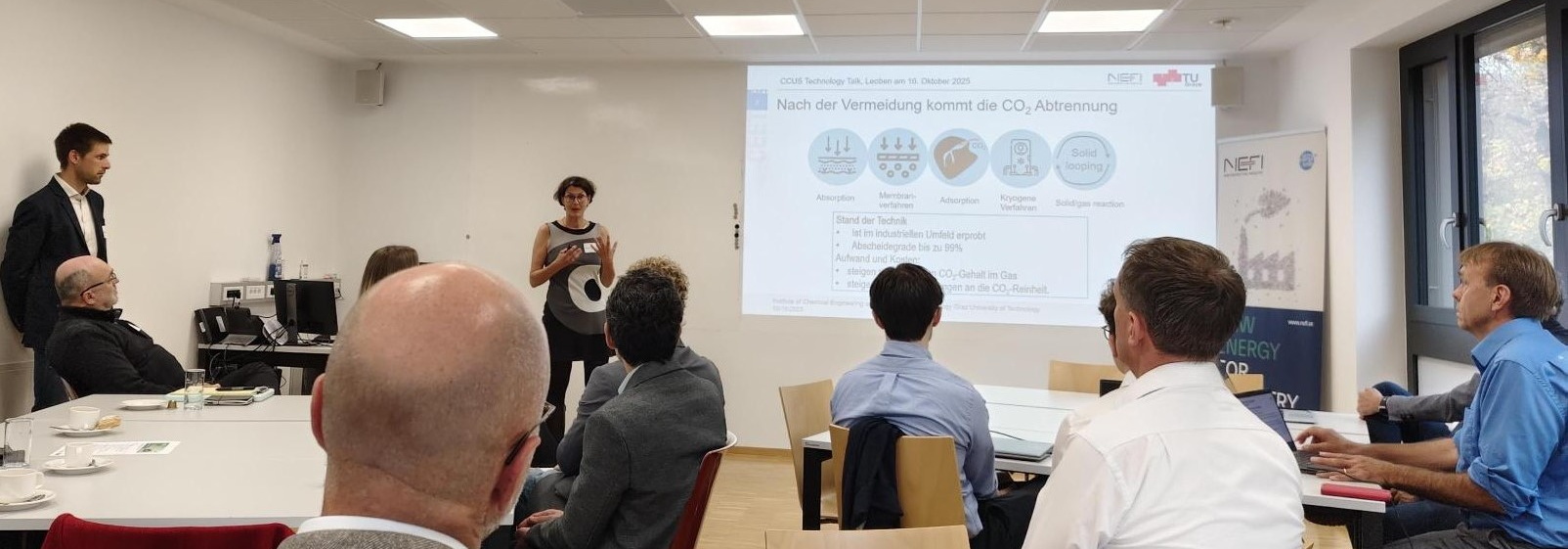 Unter diesem Leitgedanken fand am 16. Oktober der NEFI Technology Talk „CO₂ als Ressource – Technologien und Chancen“ an der Montanuniversität Leoben (MUL) statt. Organisiert unter Mitwirkung von David Banasiak (MUL) diskutierten Vertreter*innen aus Industrie, Forschung und Technologieentwicklung gemeinsam mit den HUB-Co-Leads des CCUS HUBs das Thema „CO₂ als Rohstoff zur klimaneutralen Industrie“.