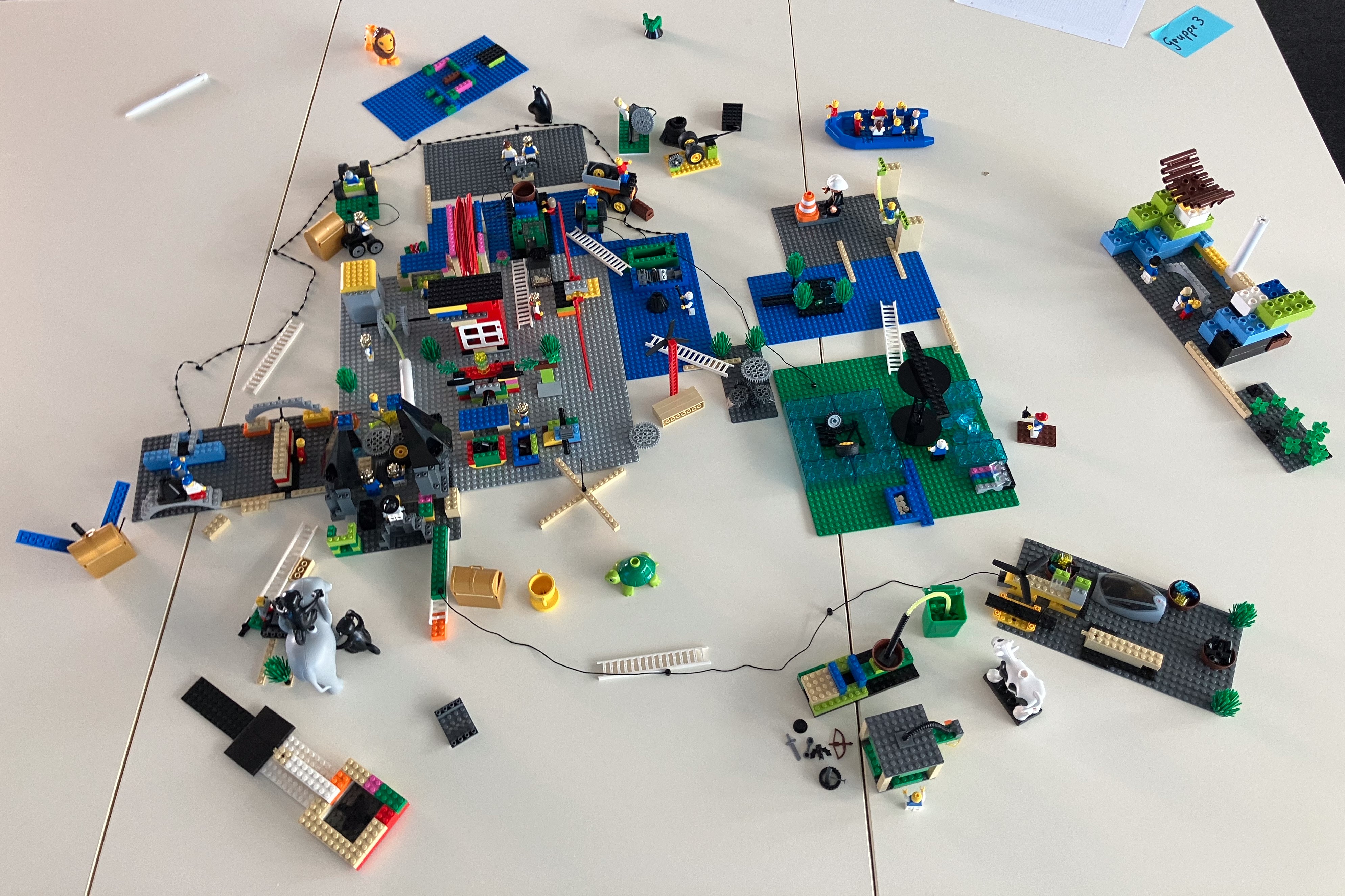 Zum Auftakt visualisierten die Teilnehmer*innen mit der LEGO® Serious Play® Methode die gesamte Wertschöpfungskette von HANSA-FLEX. Die drei Gruppen zeichneten dabei ein umfassendes Bild auf: von Stahl- und Gummiproduktion über Extrusion, Konfektionierung und Nutzung beim Kunden bis hin zur Rücknahme, Trennung und Wiederverwertung in Recyclingprozessen. Bereits hier zeigte sich deutlich, wie wichtig durchgängige Kreisläufe und eine enge Zusammenarbeit zwischen Herstellern, Verarbeitern und Recyclern sind.