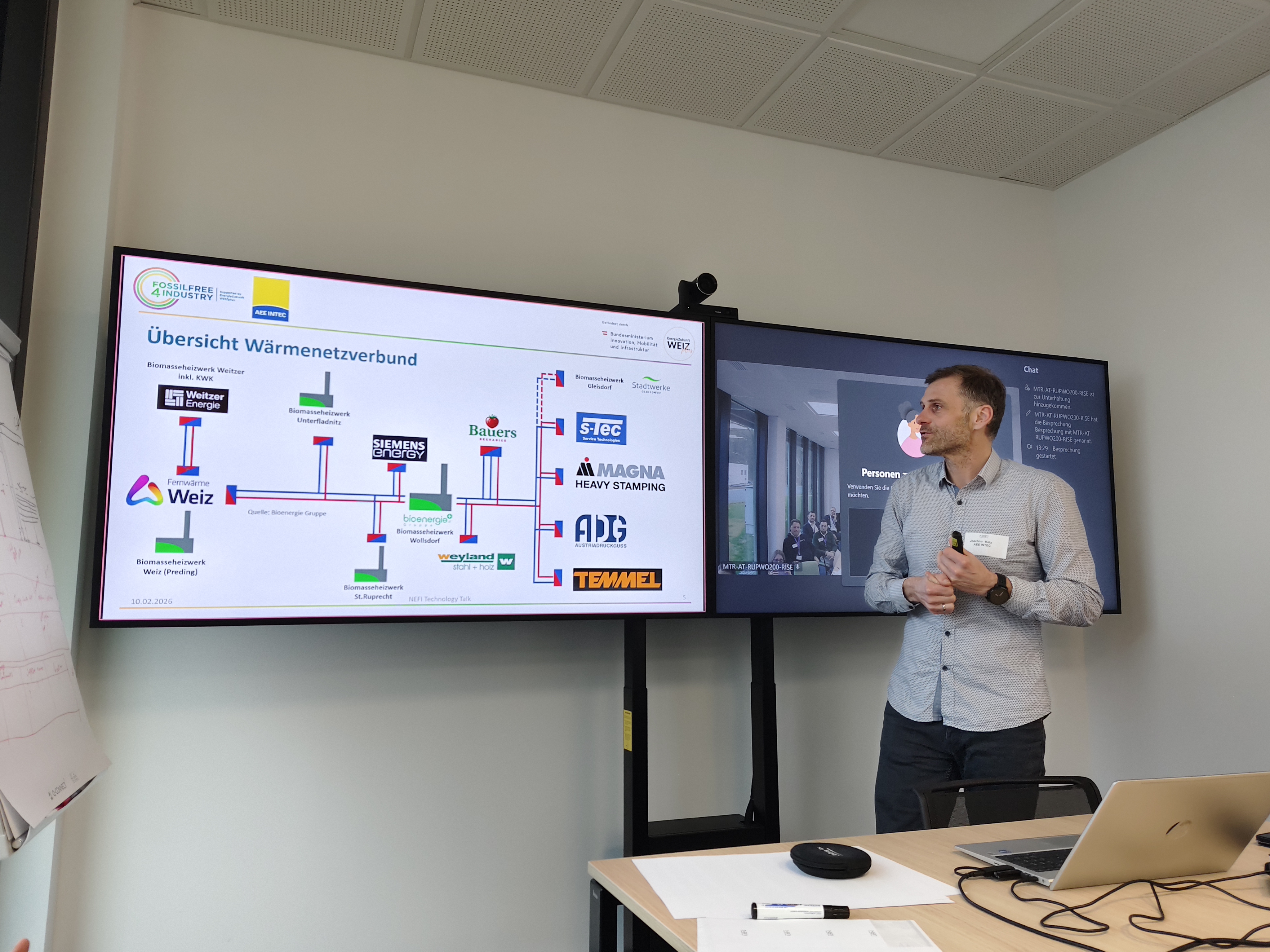 A particularly illustrative regional example was presented by Günther Maier (EnergieZukunft WEIZplus) and Joachim Kelz (AEE INTEC) through the EnergieZukunft WEIZplus initiative. The intermunicipal heat network and energy communities demonstrate how symbiosis can be implemented in practice. The involvement of numerous stakeholders creates a strong regional network, opens up new opportunities for energy exchange, and at the same time highlights the organisational and technical challenges involved.
